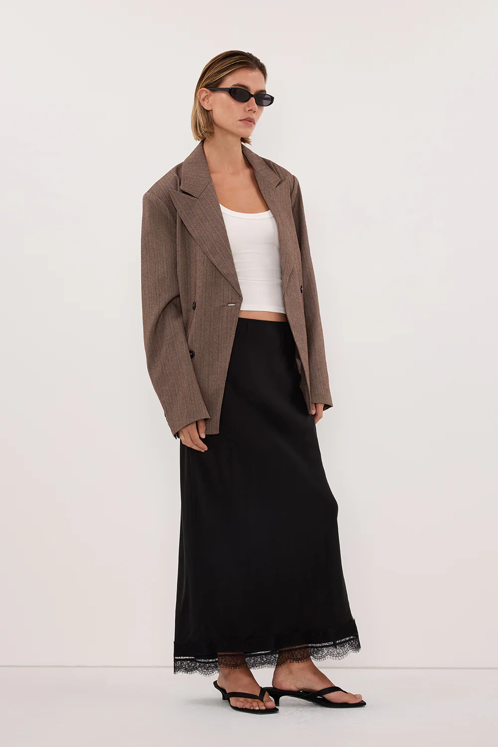 HAILEY CHOC OVERSIZED STRIPE TIE BLAZER